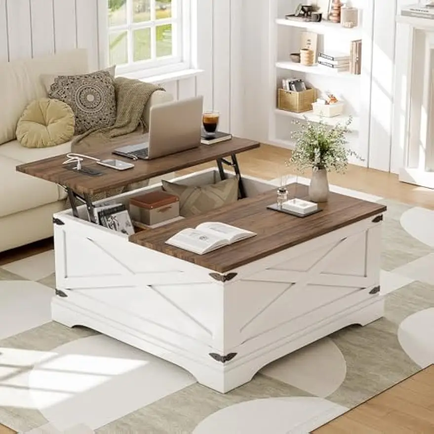 2025-Lift Top Coffee Table with Storage, Square Coffee Table for Living Room with Charging Port