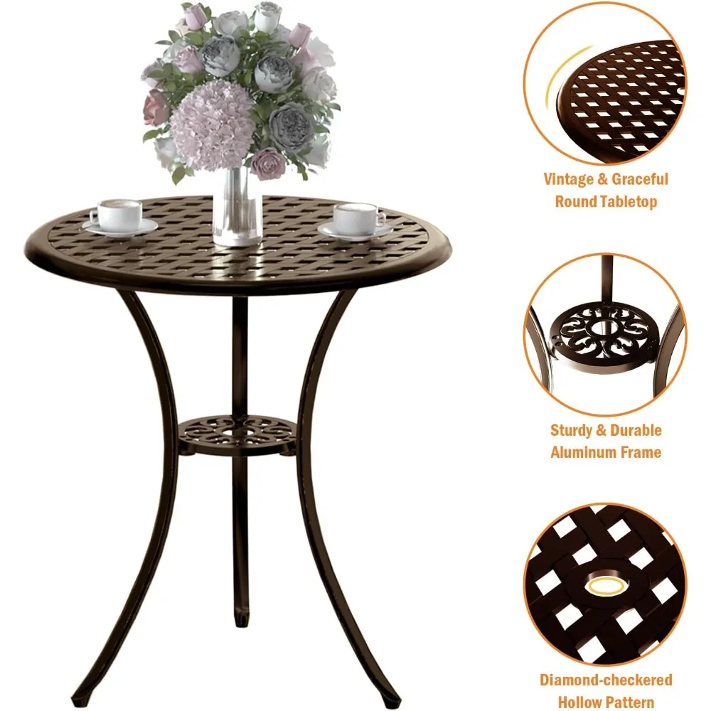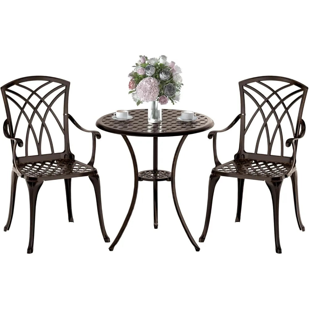 3-Piece Cast Aluminum Outdoor Bistro Set with Umbrella Hole for Balcony, Table and 2 Chairs