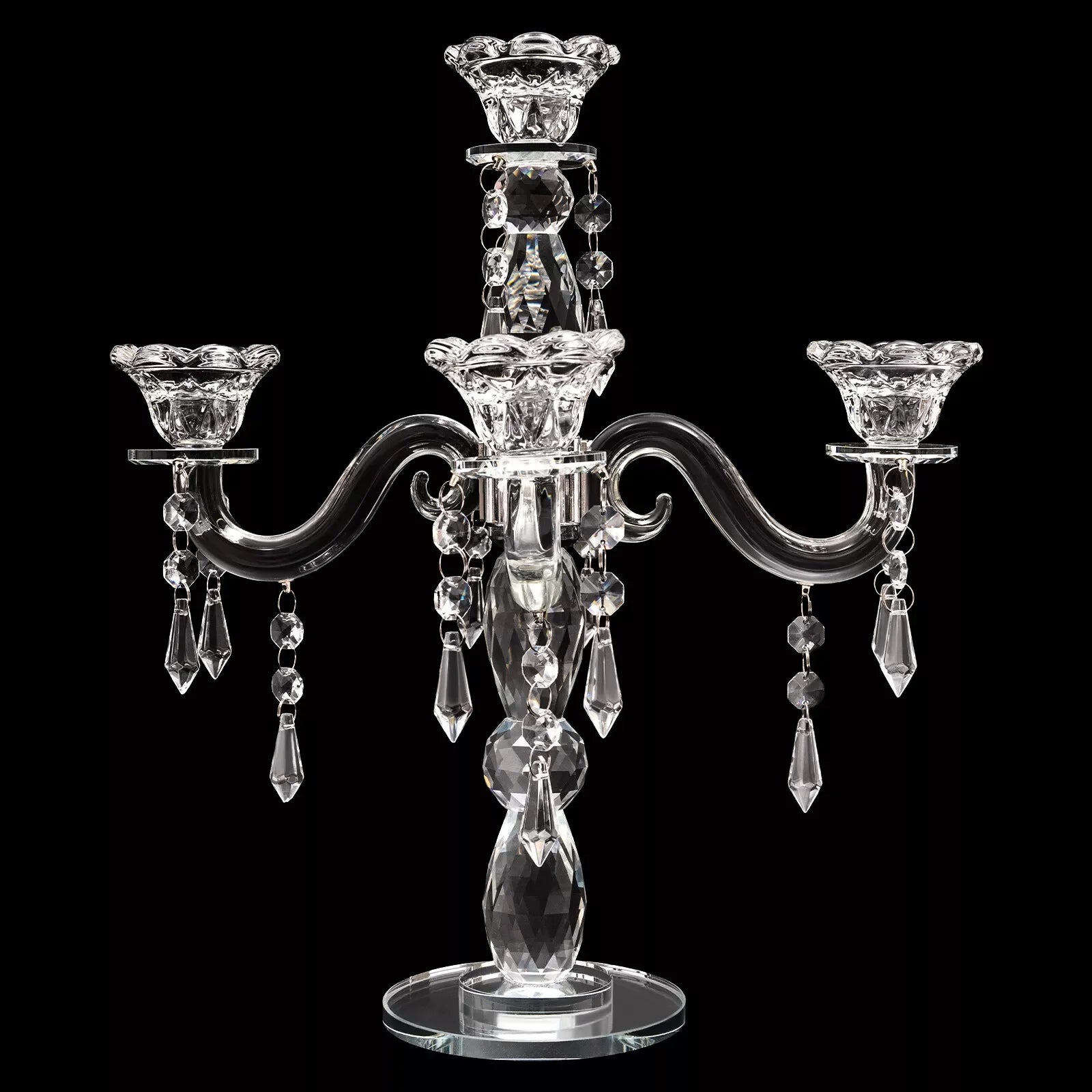Elevate your table with a dazzling Bymaocar 5-arm Crystal Candle Centerpiece Candelabra that bathes celebrations in refined, multi-faceted light and crafts a timeless centerpiece for every occasion.