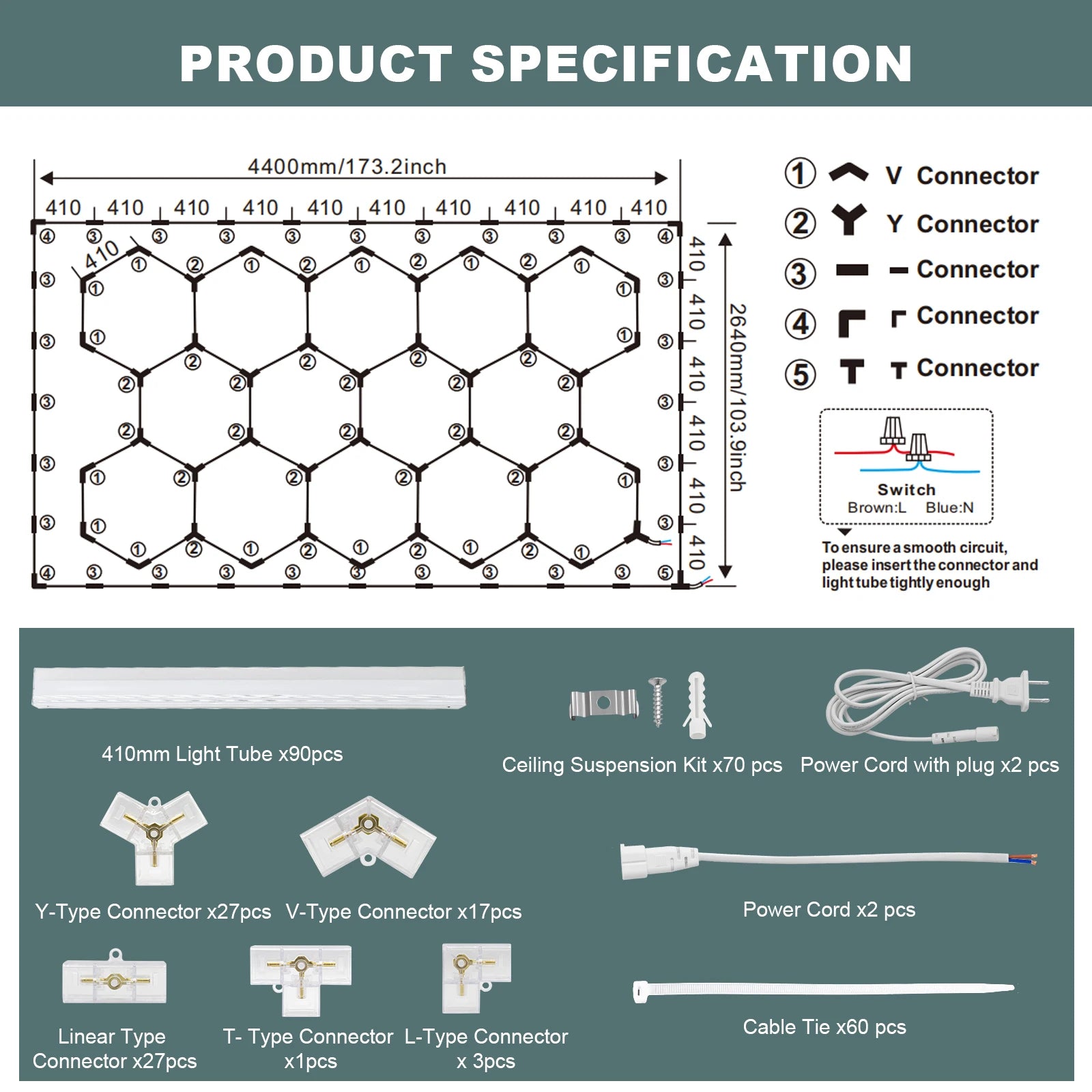 Hexagon Led Garage Lights with Frame 14 Hex Grid 720W 108000 LM Super Bright Led Garage Ceiling Lights 6500K Hex Led Lights