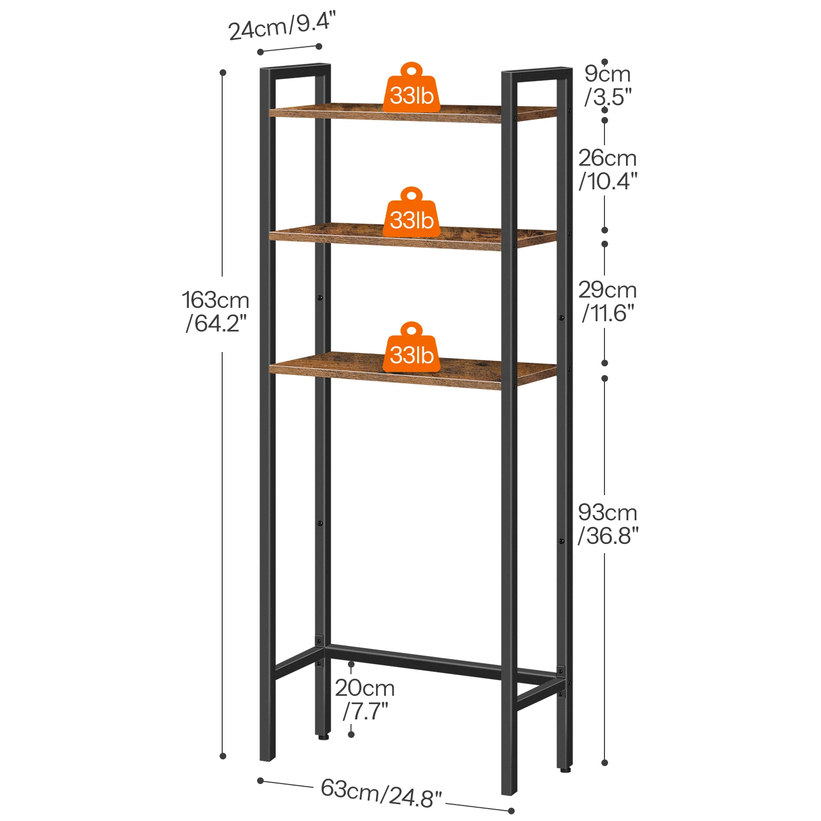 HOOBRO Over The Toilet Storage Rack 3-Tier Industrial Bathroom Organizer Toilet Shelves Space Saver with Multi-Functional Brown
