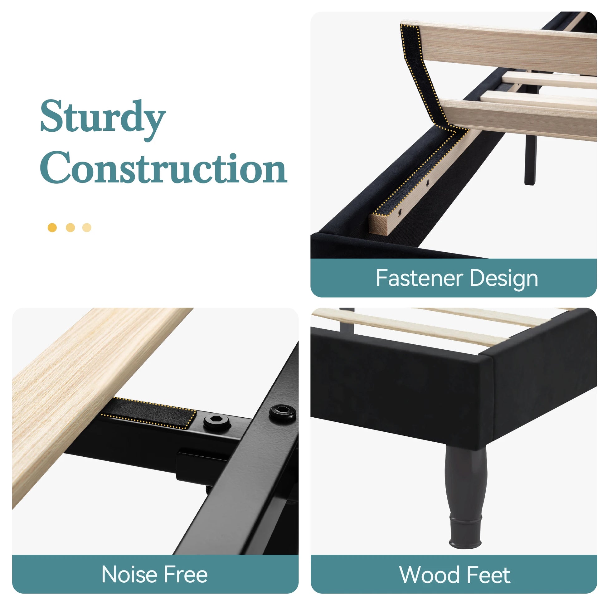 - Easy setup and box-spring-free design: Velcro-connected slats and solid wood legs enable quick, tool-free assembly while delivering durable, stable support.