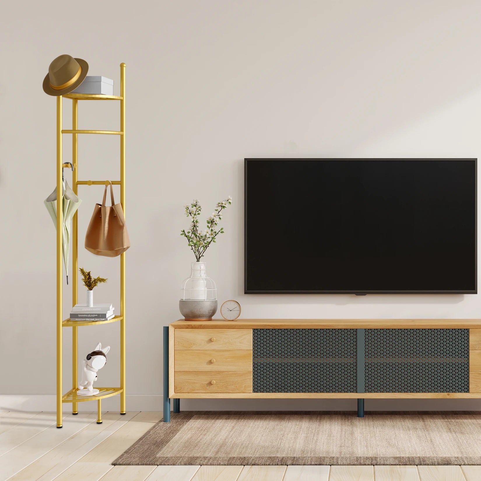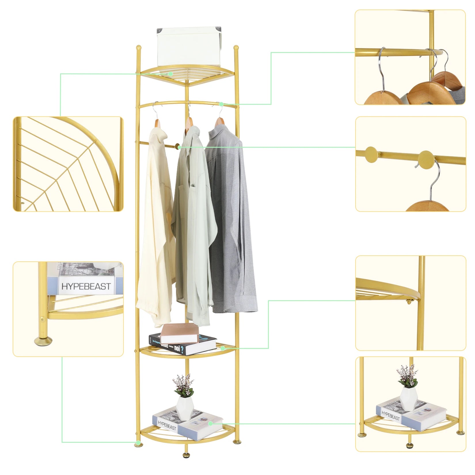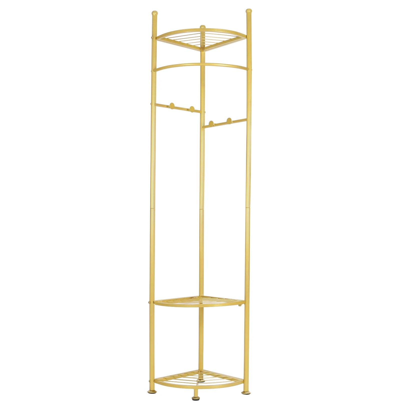 Metal Corner Coat Stand Clothes Rack with Storage Shelf Free Standing Garment Rack Hall Tree