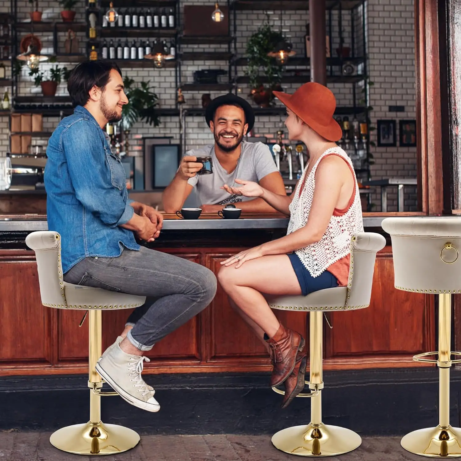 - 【Stylish Modern Bar Stool】The back of the gold bar stool is decorated with gold nail head trim, elegant and luxurious, and the gold metal base and velvet cushion make the bar stool more fashionable. Suitable for bars, restaurants, counters, cafes, offices, lounges, etc