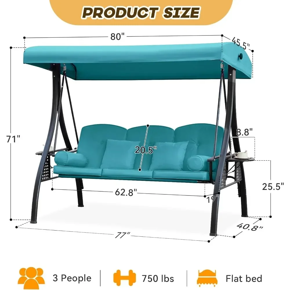 【Sturdy and Safe Construction】: The maximum weight capacity of porch swing is 750 pounds, our glider swing is designed for 3 adults to sit comfortably. The swing outdoor has a reliable buckle on backrest, ensuring stability and preventing any unwanted swinging. The double protection of 3 seat garden swing is designed for preventing accidental tipping.