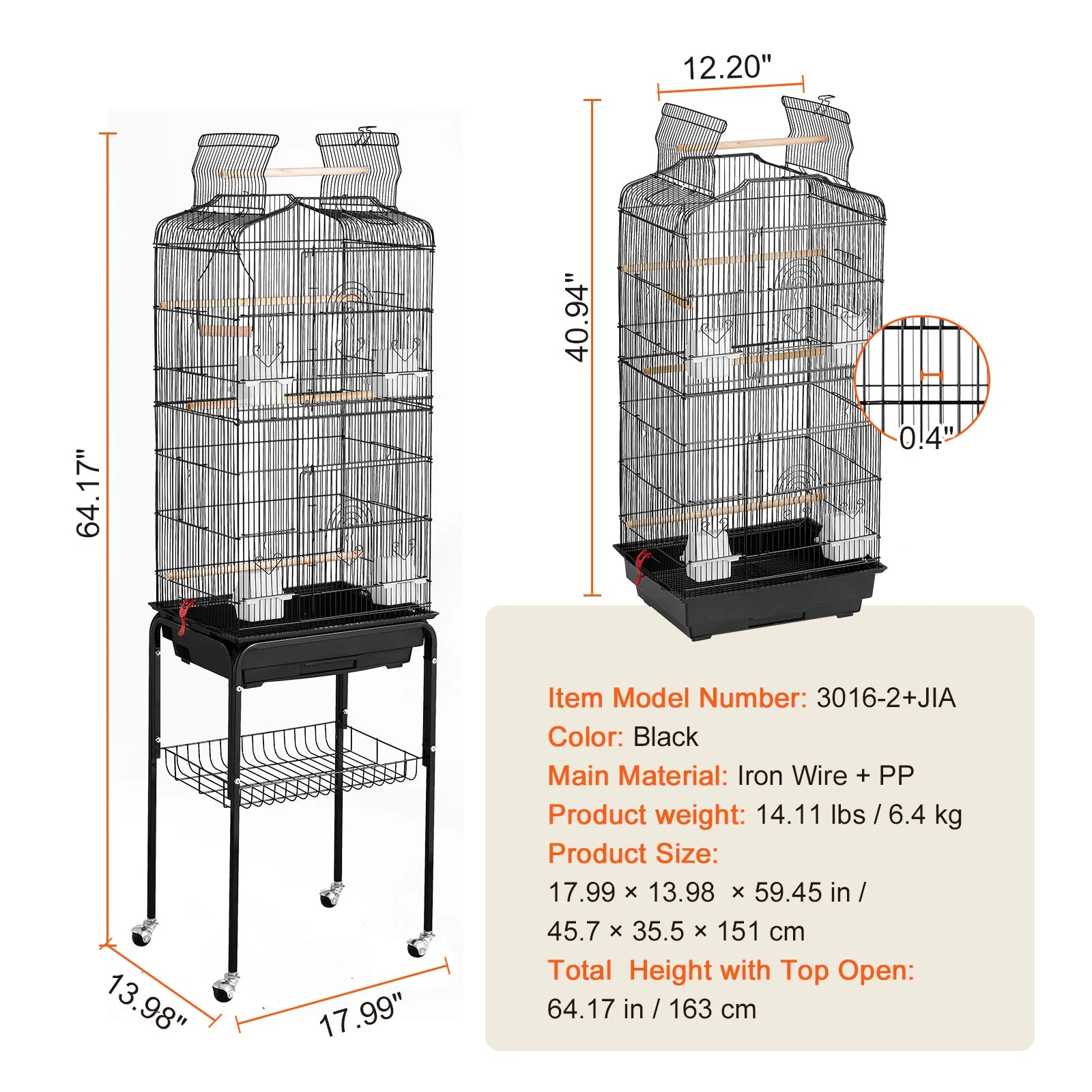 - Open-top versatility and included essentials: the top opens for free flight and the cage arrives with four feeders, four perches, and a swing for enrichment.
